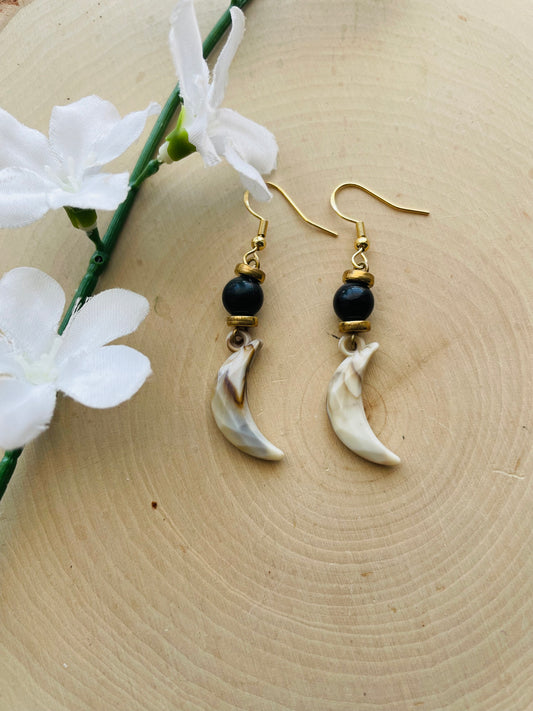 Black Beaded Lunar Earrings