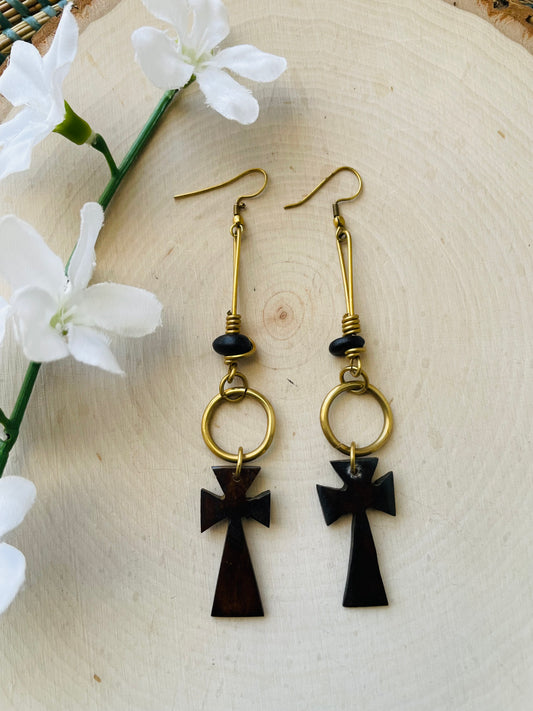 Brass Cross Drop earrings