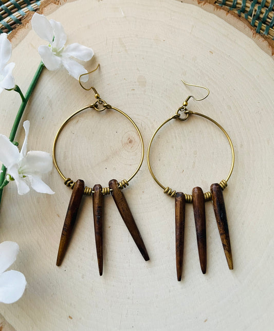 Brass Dream Catcher Spike Earrings- Brown