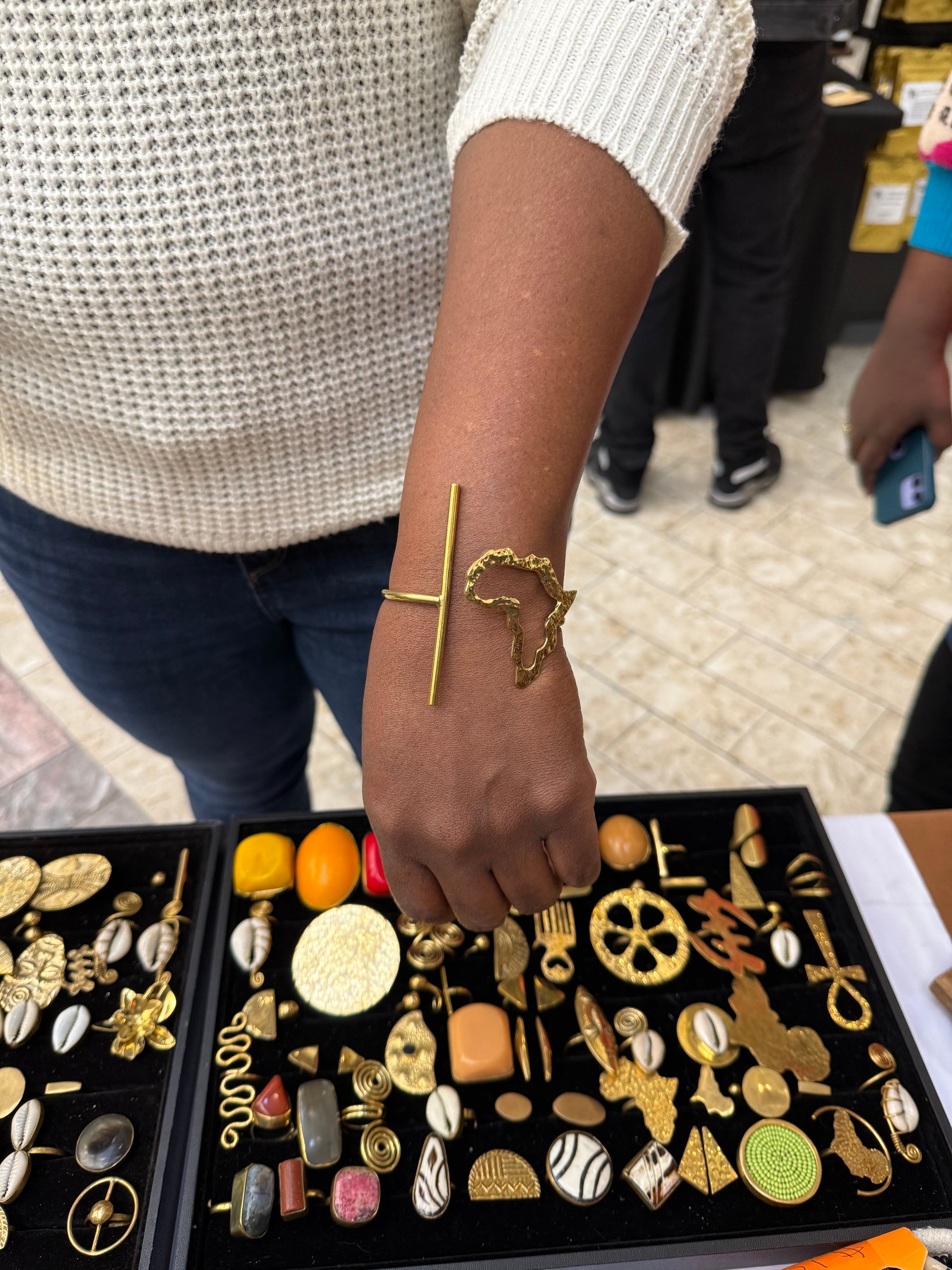 These stylish Bracelets are Handmade in Africa. Handmade with Brass. Adjustable. Perfect for a night on the town or a casual outing.